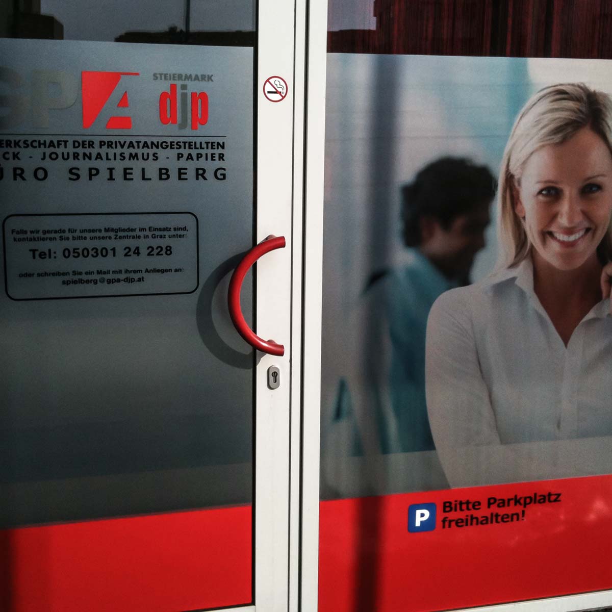 Bedruckte Sandstrahlfolie für die Veredelung von Glasflächen. Kann auch noch Konturgeschnitten werden um besondere Effekte zu erzielen. Auf Wunsch mit mattem Schutzlaminat für erhöhte Kratz- und UV-Beständigkeit.