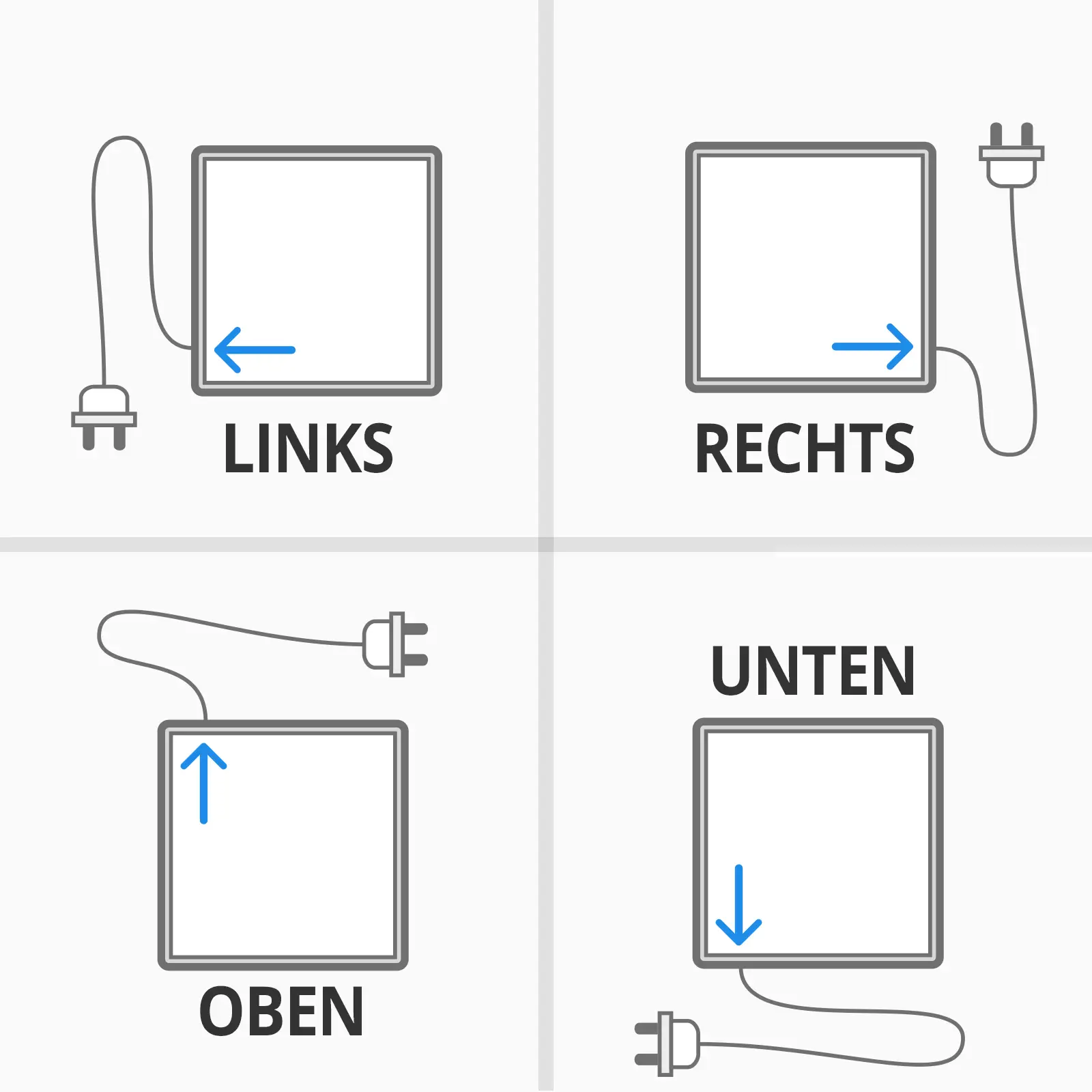 • Stecker jeweils 6cm von der Ecke entfernt (siehe Grafik)